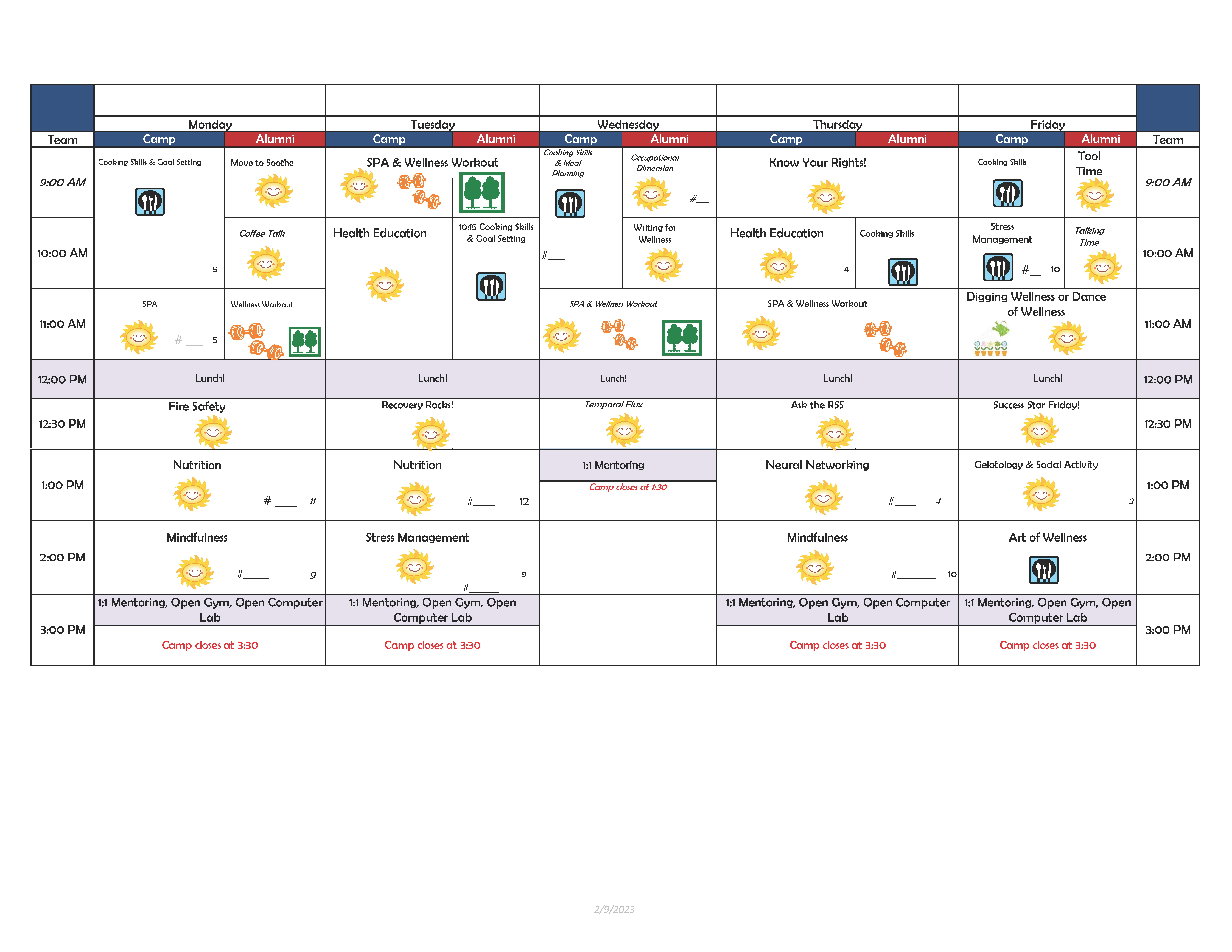 Enroll in Camp Wellness and transform your health journey! Our programs are packed with exciting activities that teach you how to choose healthy meals, exercise safely and make smart lifestyle choices. Join a supportive community where you’ll play fun educational games alongside fellow participants and health mentors, all while increasing your stamina and social skills. With certified personal trainers guiding your physical activity classes, you’ll soon discover a happier, healthier you!